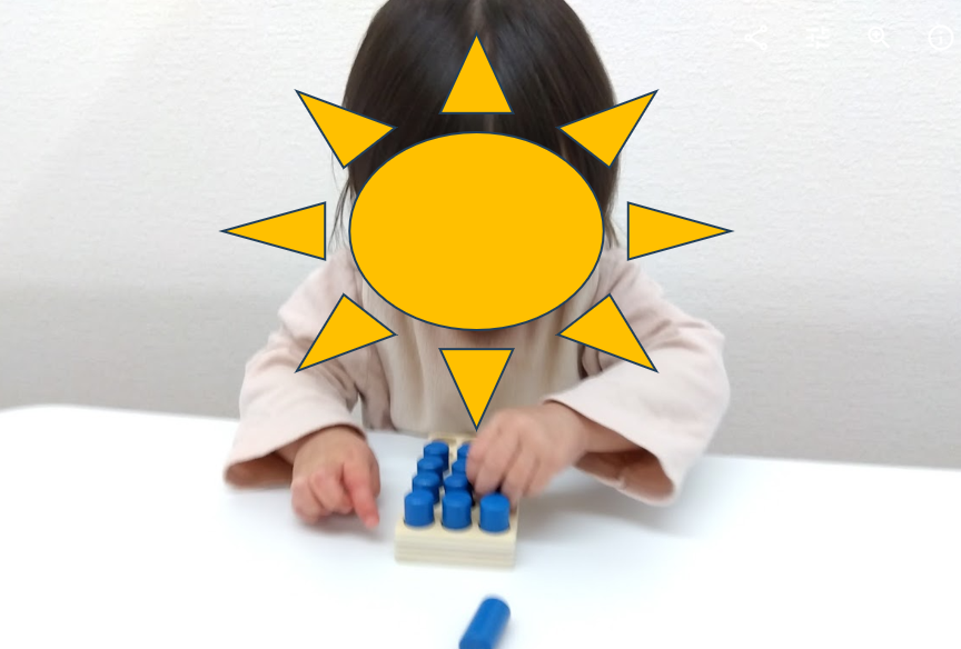こちらは積み木のような小さいペグを穴に入れたり、取る内容の教材です。