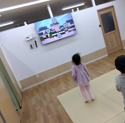 的を目で追いかける際の「追従性眼球運動」や、連続でジャンプやしゃがむ、左右にパンチをするので「体幹」や「空間把握能力」を養うことができます。