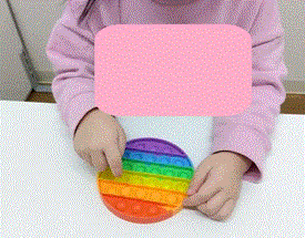 お子さんによっては、「押す指(手)」「プッシュポップを押さえる手」などの役割が決まりつつあるお子さんもいらっしゃいます。この動作が年齢を重ねていくと!