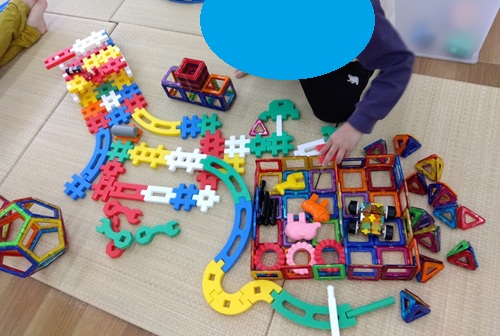 お子さん「ブロックで駐車場とか~。お家とかつくってさぁ~。」