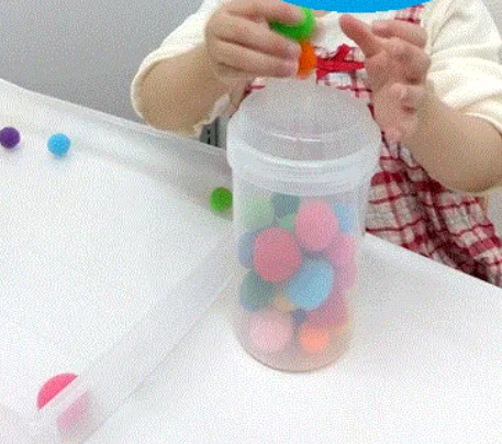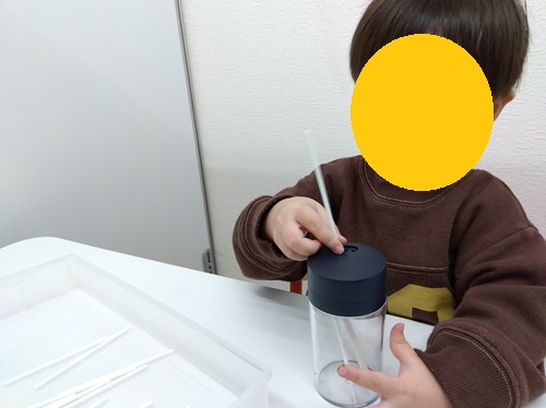 ストローを手で取る際に目と手を連動させる「目と手の協応」や、容器の穴にストローを差し込む動作は「空間把握能力」など発達に重要な能力を養うことができます😊