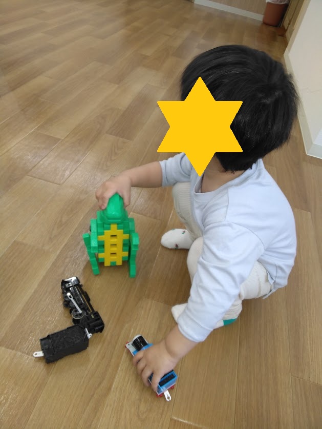 職員と一緒に様々な形のブロックを組み合わせて、恐竜や乗り物などを作って過ごしています🦖