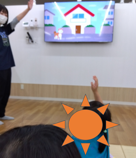 モニターに注目してみながら、元気よく手を挙げてくれていました!