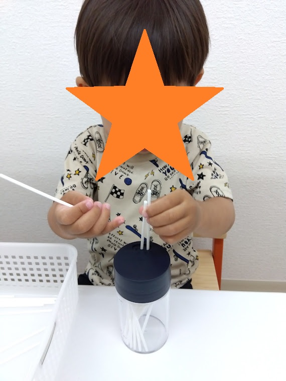 ストローを手で取る際に目と手を連動させる「目と手の協応」や、容器の穴にストローを差し込む動作は「空間把握能力」など発達に重要な能力を養うことができます😊