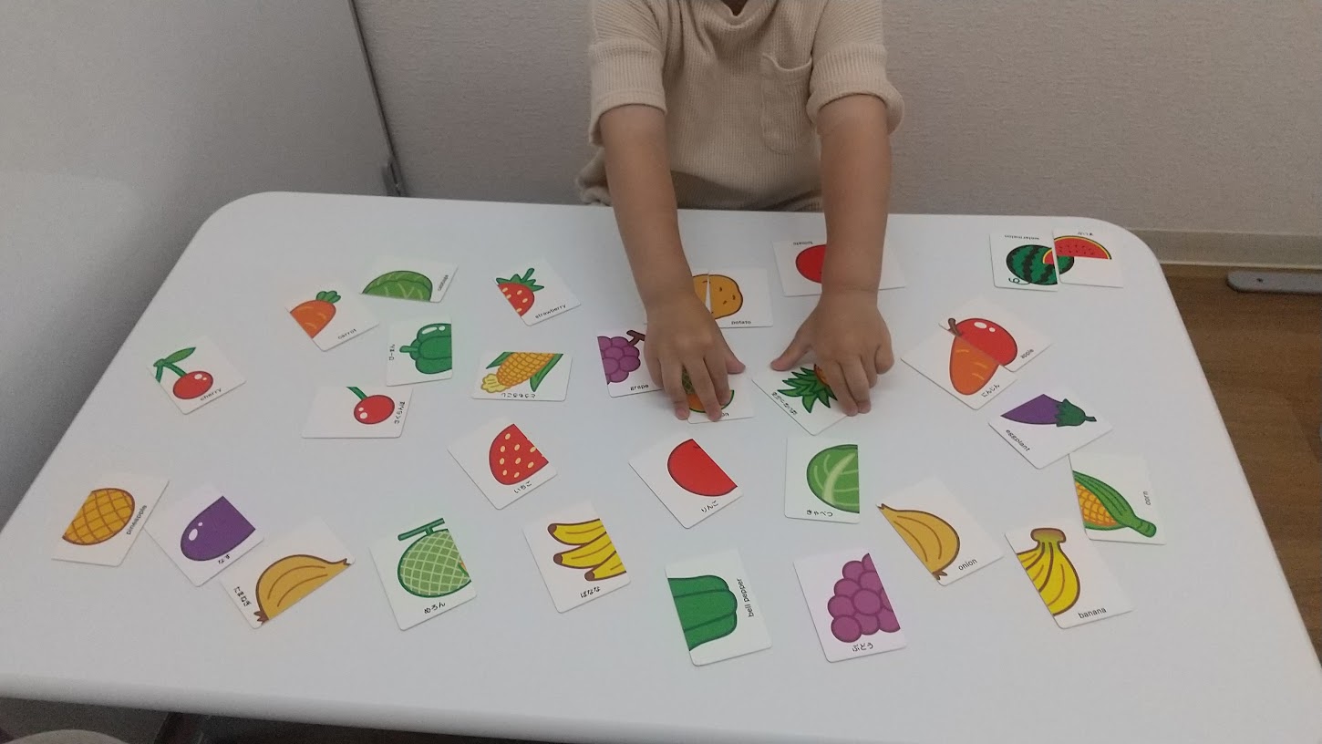 写真の絵合わせカードでは、たべものをテーマにしたカードで、