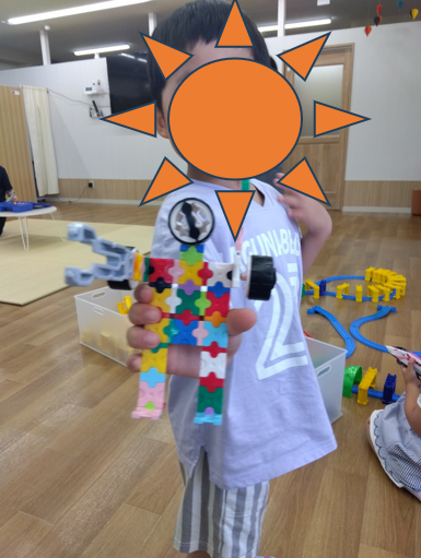 LaQというブロックでロボットを作ってくれたお友だちが職員に見せてくれた時の写真です。
