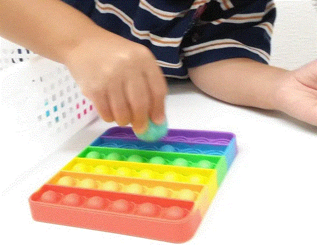 ポンポンをトングを使用して、ケースへ入れる課題です!