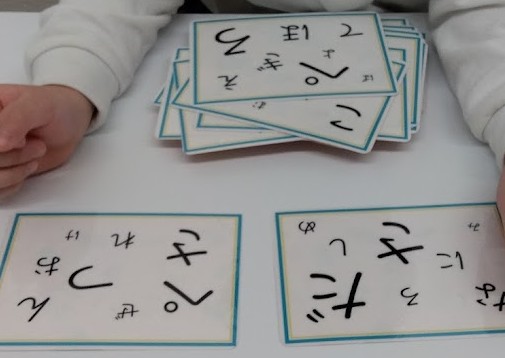 先に同じ文字を見つける対戦形式で取り組んだり、文字の大きさが違うので2枚のカードを見比べるビジョントレーニングとしても取り組んでいます。