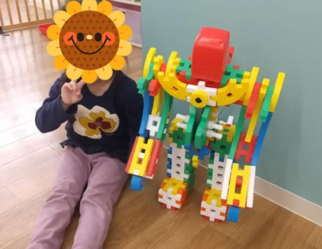 お子さんは、とても集中してニューブロックを組み立て、形や色にこだわって作っていました!