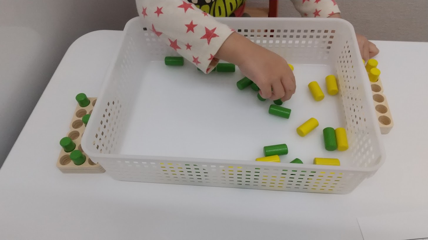 2色を色分けし入れたり、オセロのように入れてもらったりします。