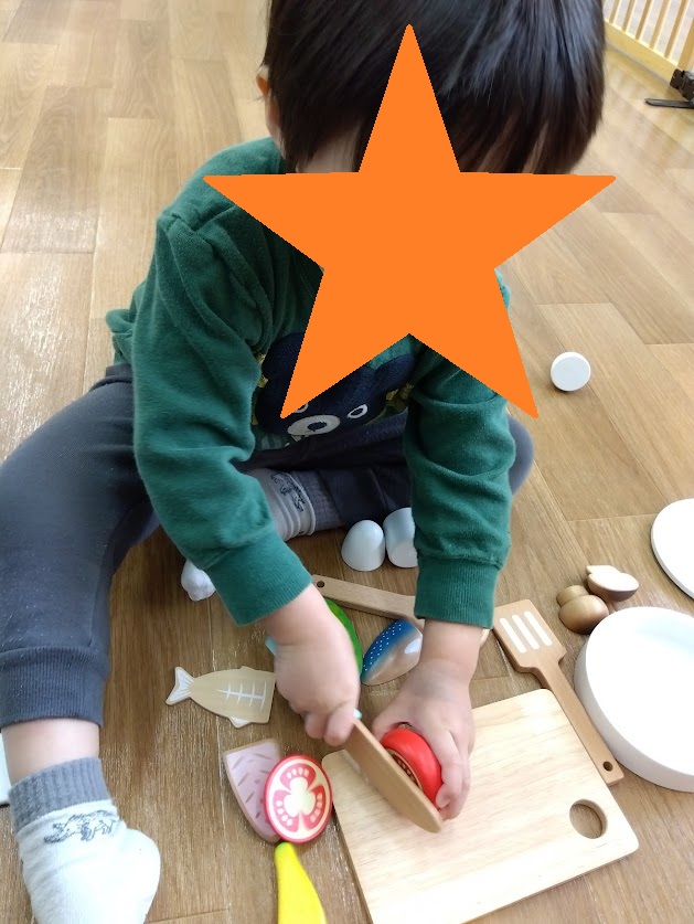 野菜や果物、魚を切り、お鍋やフライパンで焼く作業を本物の料理を作っているかのように行っていますよ☺️