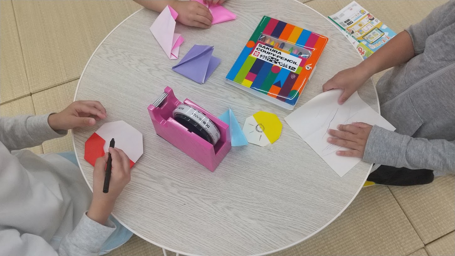 本日は、自由時間に取り組むことのできる「折り紙」で遊んでいる様子をご紹介します。