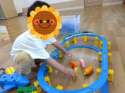 プラレールでは橋脚を立てて線路が2段になったり、ブロックやままごとも配置して都市化が進んでおりました。
