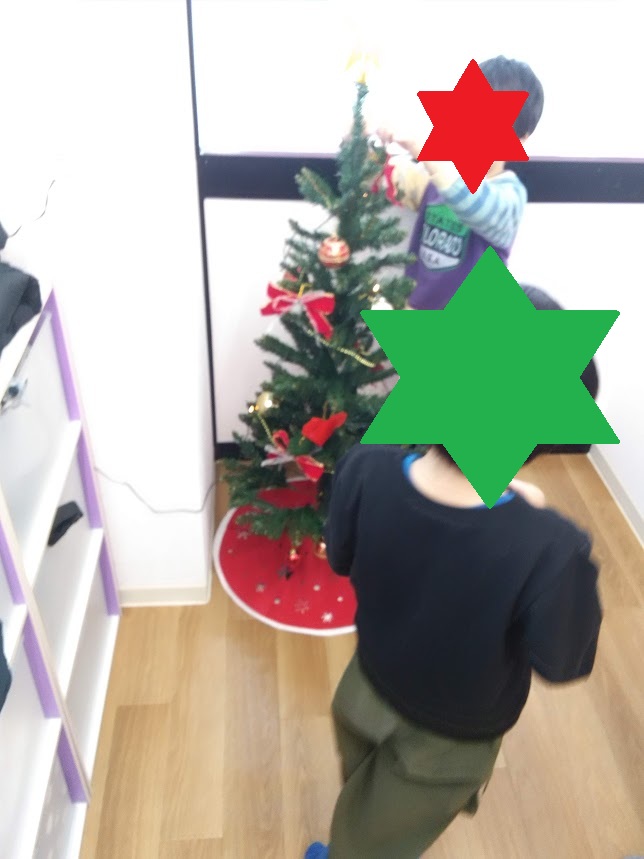 来所して身支度をするときに1番先に目に入る場所にクリスマスツリーを飾りました。子どもたちも来てすぐにクリスマスツリー気が付き目を輝かせてクリスマスツリーがあること職員に教えてくれます🤩