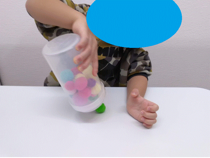 個別課題「ポンポンを下からケースへ入れたよ!」