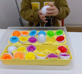 初めから、ケースにバラバラに入っている。エッグの凸凹を合わせて再びケースへ戻し入れる活動です。