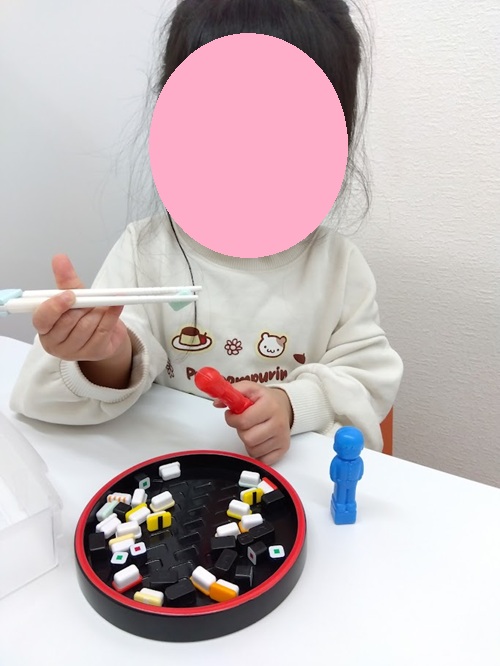 こちらは「まめ寿司」という知育玩具を使用してお箸の練習をしている様子です!