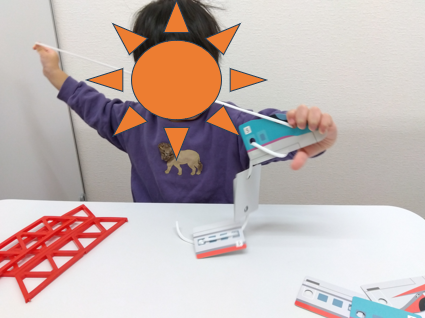 個別課題の様子~電車のひも通し~
